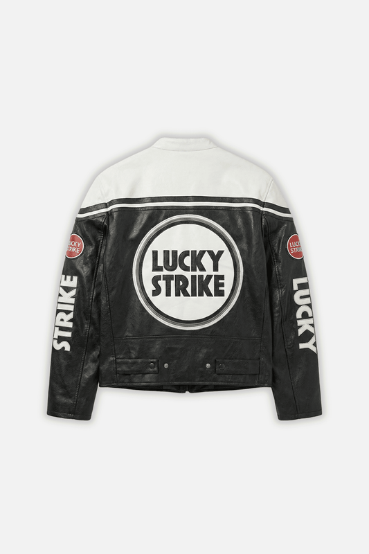 Lucky Strike Vintage Racing Leather Jacket - White & Black Edition